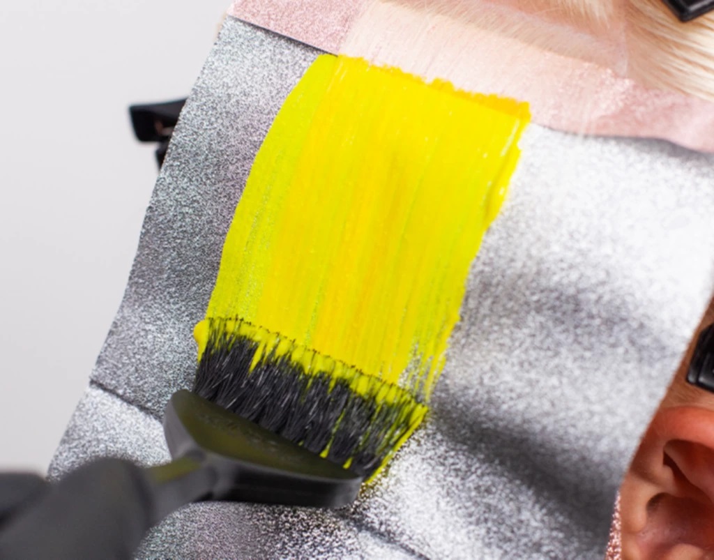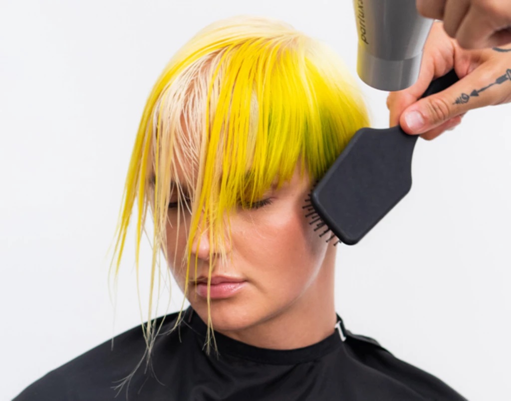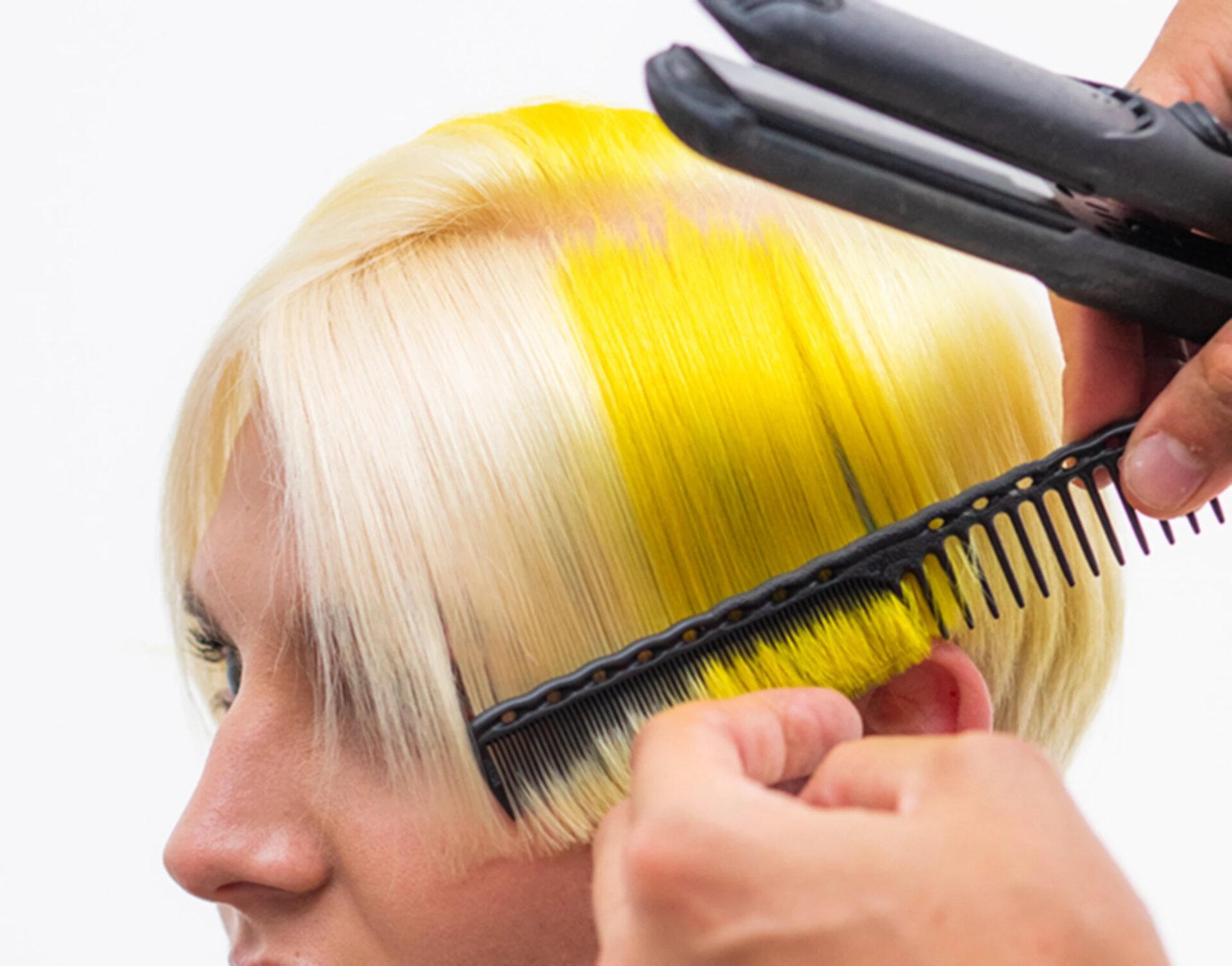 Marrying history and modernity, this look combines a bold contemporary hairstyle and an old fashion trend – Double denim. Just like the chic Hollywood cowboy, the 50’s working-class woman and the biker riding his Harley. Dazzling expression is all of these in one, combining masculine inspiration with a strong feminine taste. The hair colour highlights this duality with the powerful yellow & green contrast.