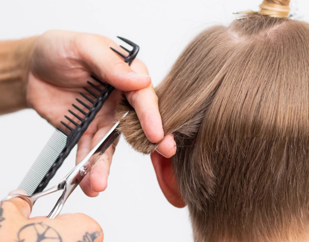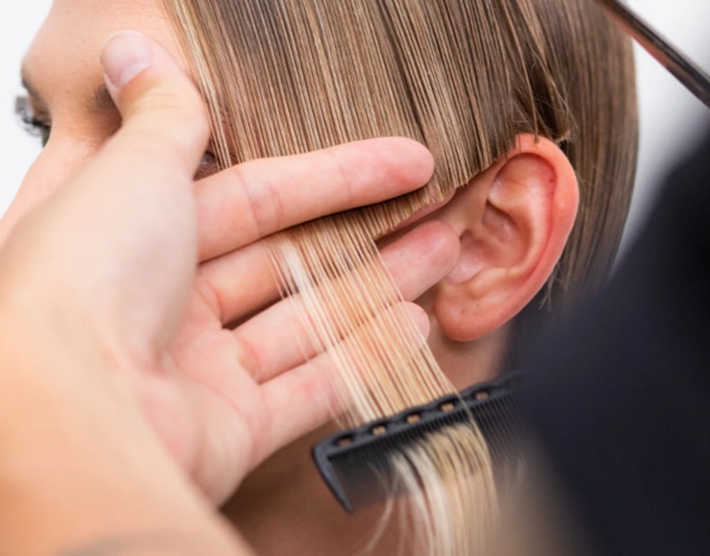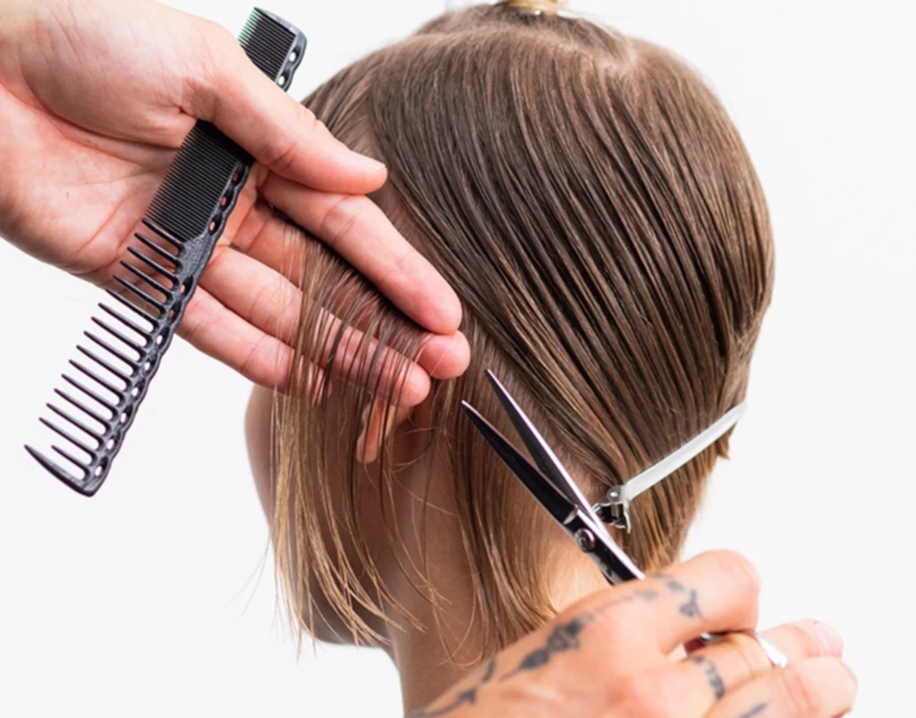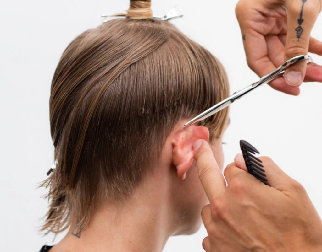 THE CUT & STYLING: A very long one length haircut with a bold between chin-to-shoulder length shorter one-side.
