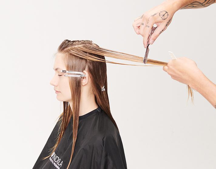 Colour This hair colour is a soft look with touches of sand and neutral hues for a blonde that matches with everything Cut The haircut has a dishevelled airy feel that complements the softness of the colour palette chose. Texture The texture gives really uncomplicated vibes with soft weightless ends and a soft wave. Fashion You can’t go wrong with a good pair of jeans. Nod towards the normcore trend by teaming them with a plain cami and sneakers. Finish with a patterned kimono for added feminine flair.